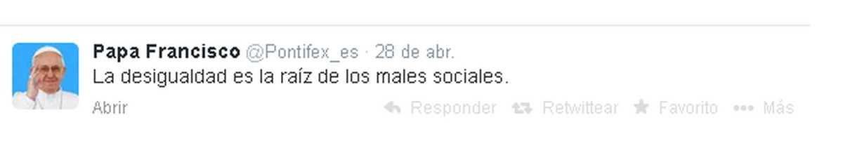 La reciente publicación del trino que arriba reproducimos en la cuenta de twitter del Pontífice ha suscitado